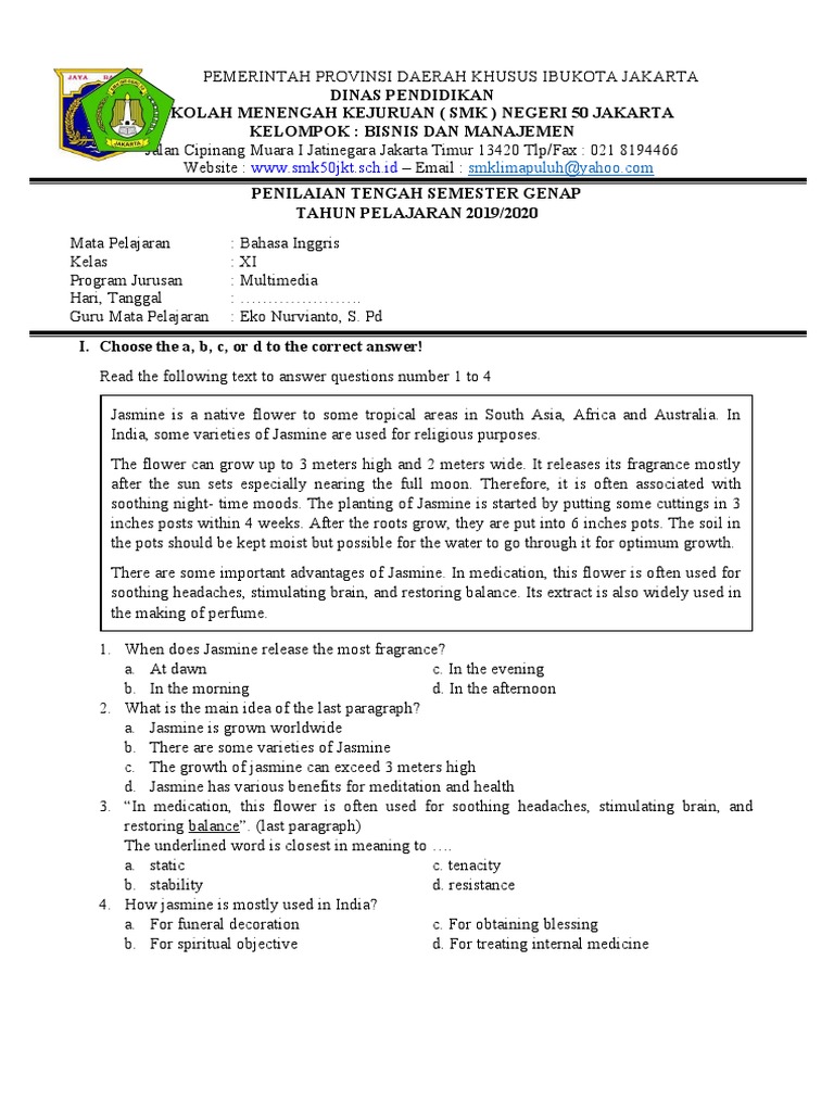 Soal mid uts bahasa indonesia semester 2 genap.